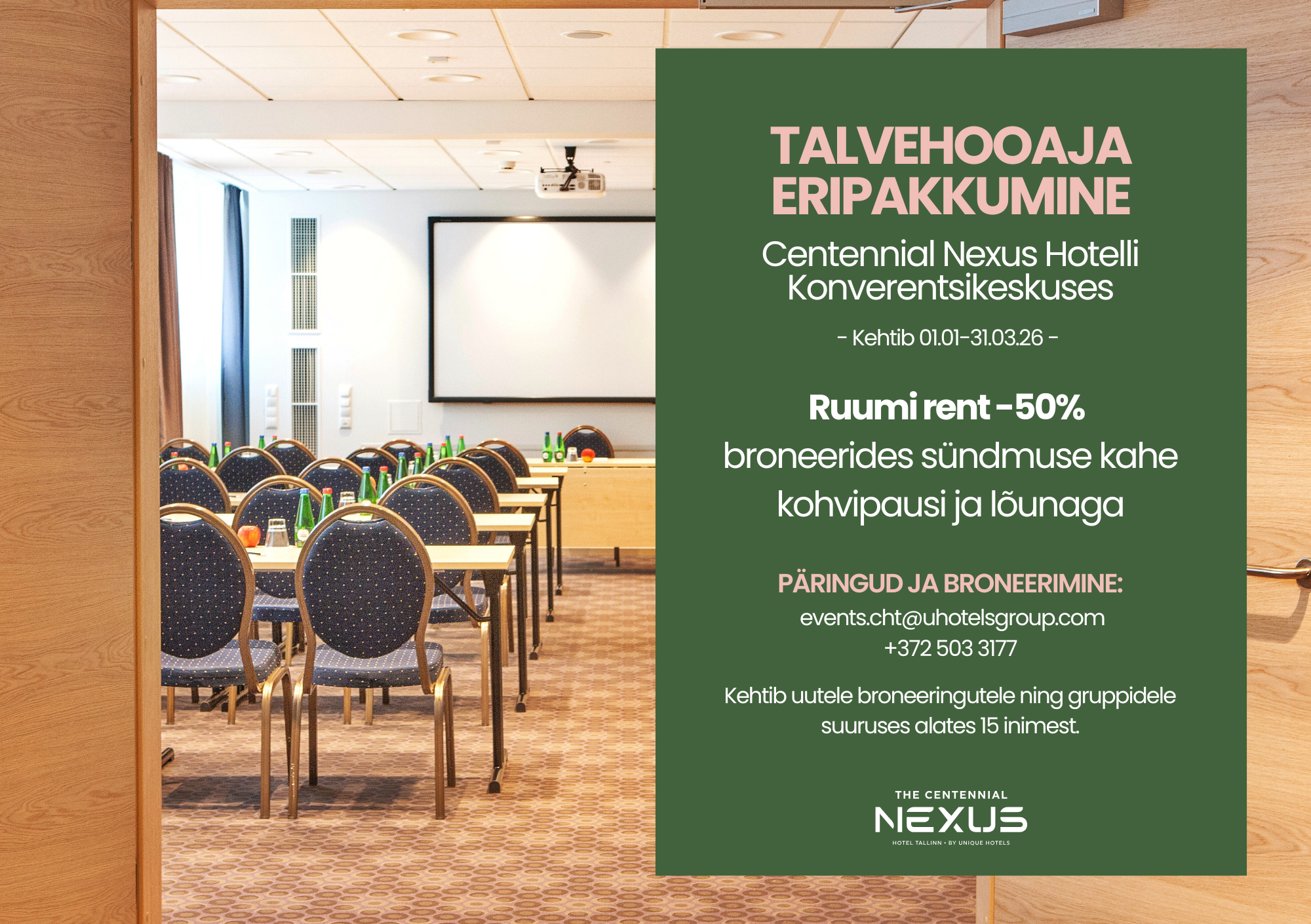 Tutvu sündmuste korraldamise võimalustega allpool ja võta ühendust events.cht@uhotelsgroup.com või +372 503 3177.
